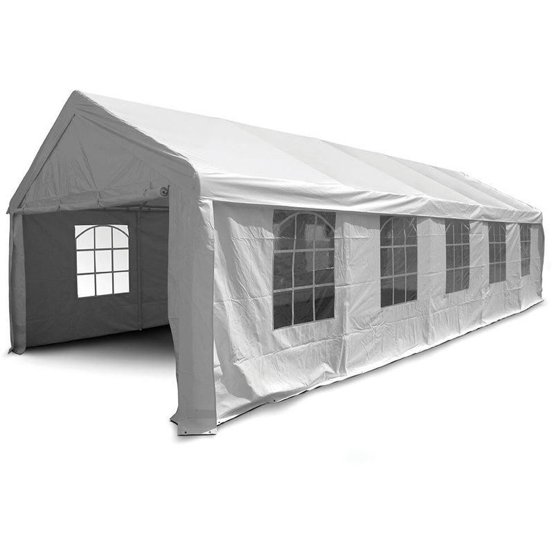 Tendostruttura Impermeabile Con 10 Finestre Struttura In Ferro Telo In Polietilene Taddei Maxi 4x10m Gazebo maxi compreso di 4 laterali (2 con 5 finestre + 2 ciechi), struttura in ferro verniciato, tessuto polietilene (PE) g 180/mq (made in Korea). Dimensioni m 4 X 10 X h 3,10/1,80 sezione paleria d. mm 38. Ricambi disponibili, Telo Tetto 05982, Laterali 05983...Per saperne di più