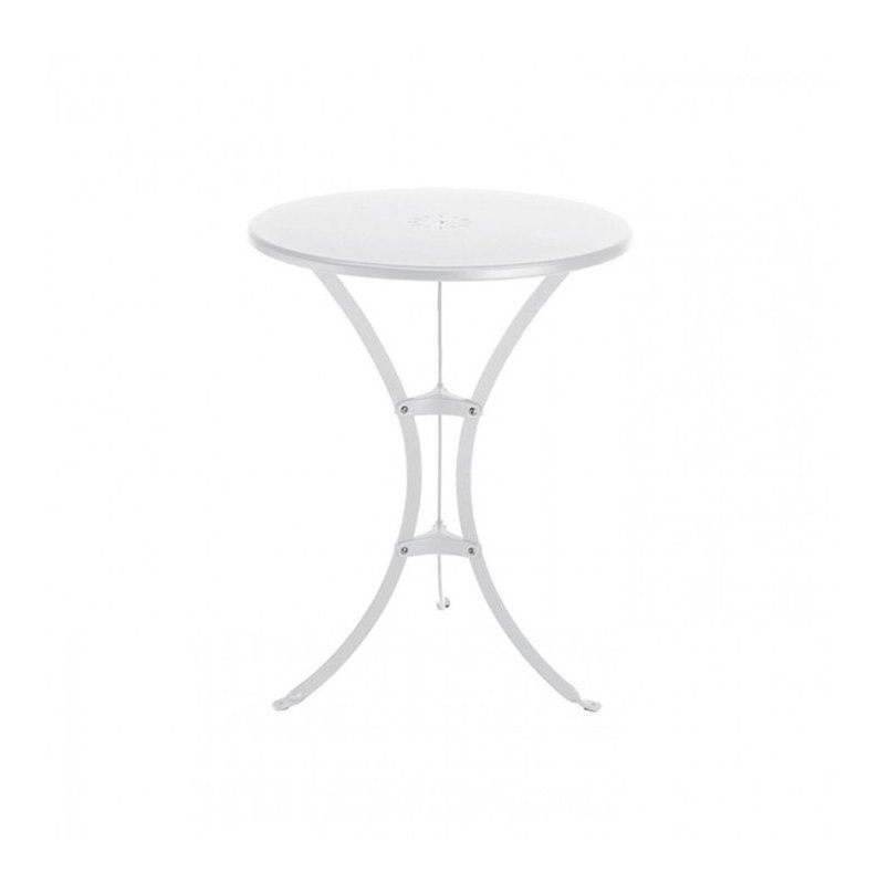 Zincato e verniciato con polvere poliestere Piano: diam. cm. 60 in lamiera con fori ornamentali Gambe: piatto dacciaio Colore: lino. Altezza: 73 cm Ripiano: diam. 60 cm...Per saperne di più