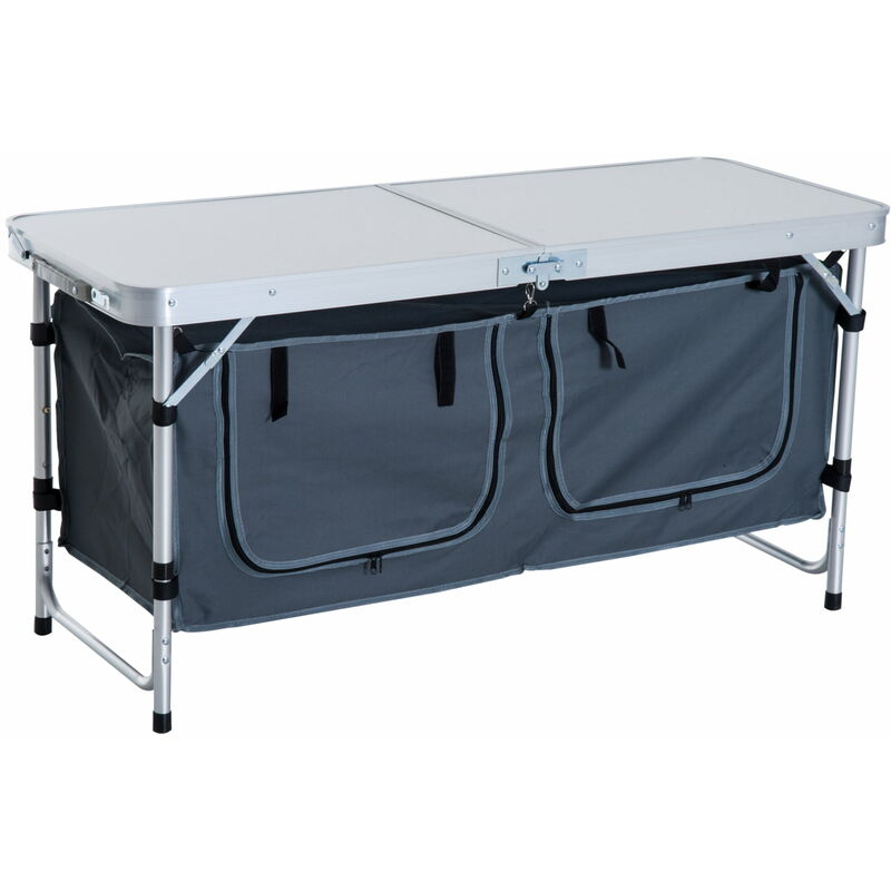 Tavolino Da Campeggio Pieghevole Con Ripiano Portavivande In Alluminio Bianco Miozzi