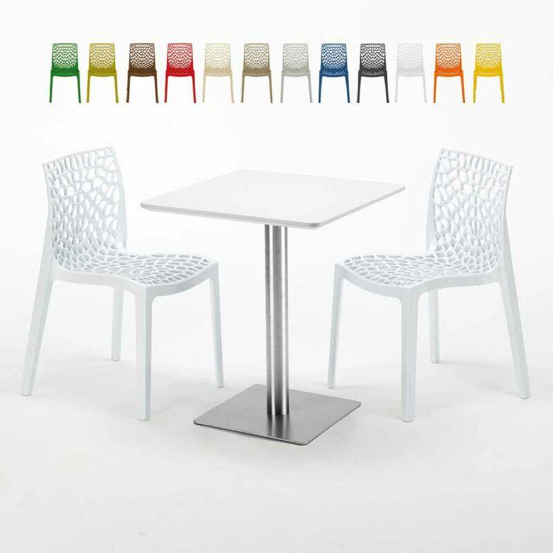 Tavolino Quadrato 60x60 cm Top Bianco con 2 Sedie Colorate Gruvyer Hazelnut | Bianco - GRAND SOLEIL