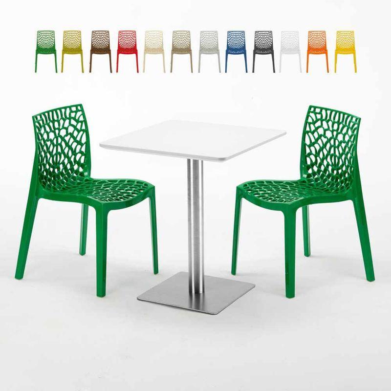 Tavolino Quadrato 60x60 cm Top Bianco con 2 Sedie Colorate Gruvyer Hazelnut | Verde 2 - GRAND SOLEIL