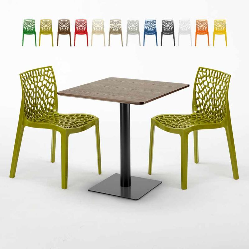 Tavolino Quadrato 70x70 cm Effetto Legno con 2 Sedie Colorate Gruvyer Melon | Verde Anice - GRAND SOLEIL