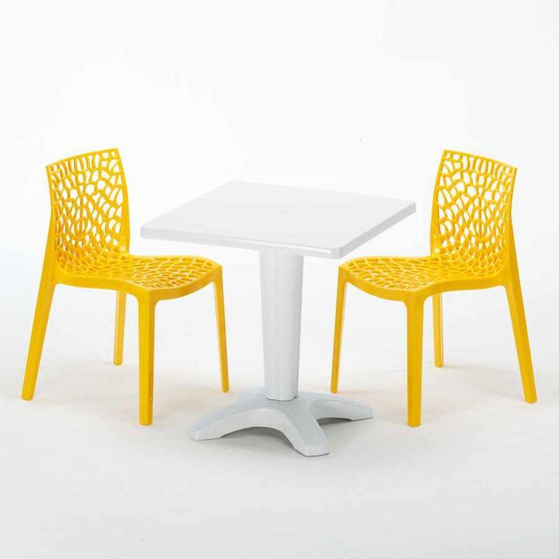 Tavolino Quadrato Bianco 70x70 cm con 2 Sedie Colorate Gruvyer Patio | Giallo - GRAND SOLEIL