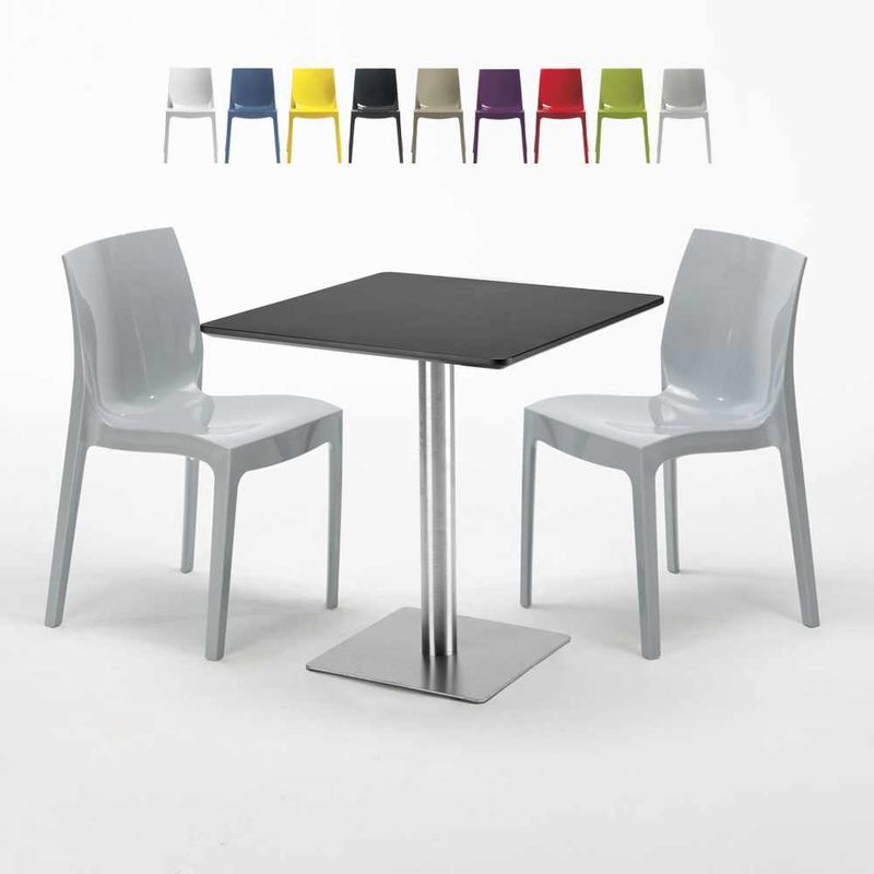 Tavolino Quadrato Nero 70x70 cm con 2 Sedie Colorate Gruvyer Kiwi | Grigio - GRAND SOLEIL