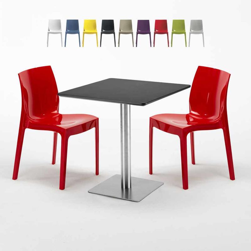 Tavolino Quadrato Nero 70x70 cm con 2 Sedie Colorate Gruvyer Kiwi | Rosso - GRAND SOLEIL