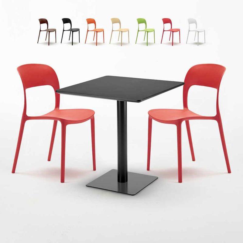 Tavolino Quadrato Nero 70x70 cm con 2 Sedie Colorate Restaurant Kiwi | Rosso - AHD AMAZING HOME DESIGN