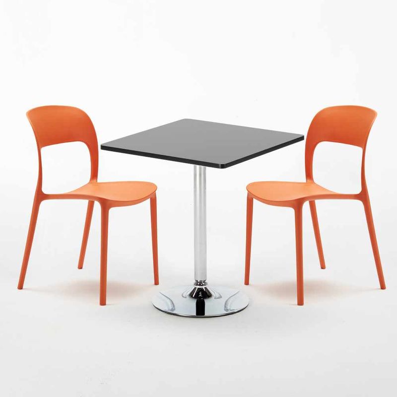 Tavolino Quadrato Nero 70x70cm Con 2 Sedie Interno Restaurant Mojito | Arancione - AHD AMAZING HOME DESIGN