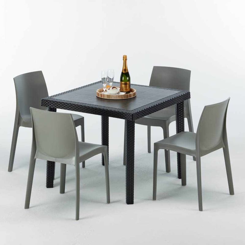 Tavolino Quadrato Nero 90x90 cm con 4 Sedie Colorate Rome Passion | Grigio - GRAND SOLEIL