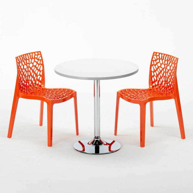 Tavolino Rotondo Bianco 70x70 cm con Base in Acciaio e 2 Sedie Colorate Gruvyer Island | Arancione - GRAND SOLEIL
