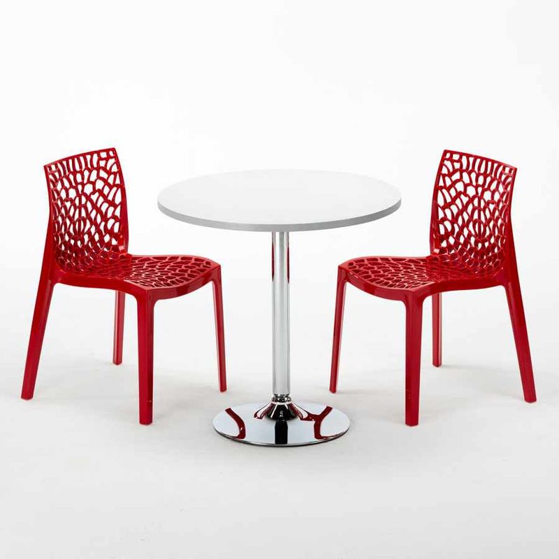 Tavolino Rotondo Bianco 70x70 cm con Base in Acciaio e 2 Sedie Colorate Gruvyer Island | Rosso - GRAND SOLEIL