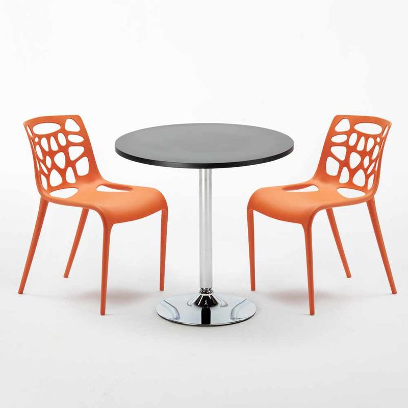Tavolino Rotondo Nero 70x70cm Con 2 Sedie Interno Gelateria Cosmopolitan | Arancione - AHD AMAZING HOME DESIGN