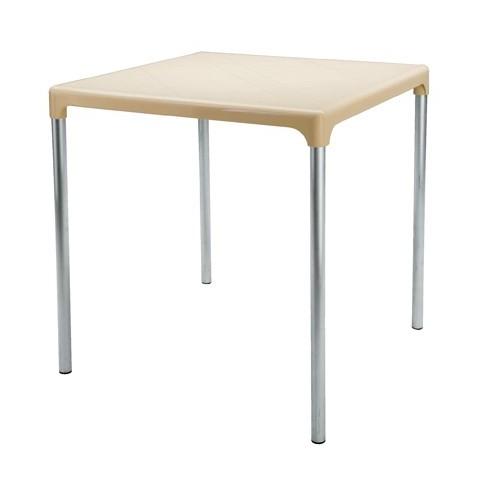 Tavolo quadrato in polipropilene Gambe in alluminio. Misure 70 x H 72cm Peso complessivo: 4,10Kg. Piano disponibile colore Arancio, Avorio, Rosso, Verde mela, Antracite....Per saperne di più