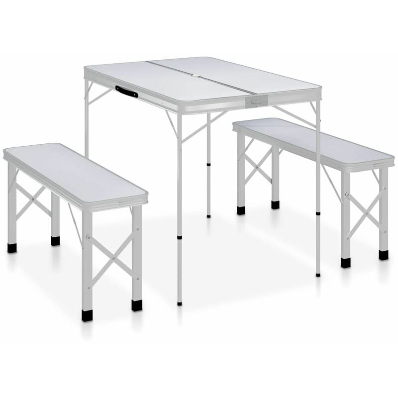 Tavolo da Campeggio Pieghevole con 2 Panche in Alluminio Bianco - Bianco - Vidaxl