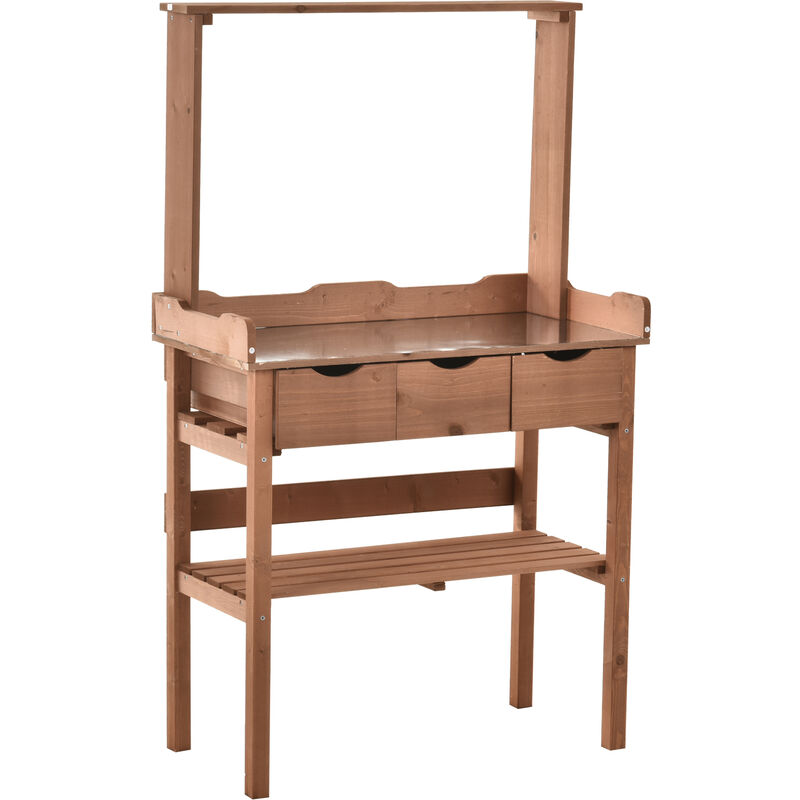 Tavolo da Giardinaggio in Legno di Abete con 3 Cassetti 80x40x135cm - Outsunny