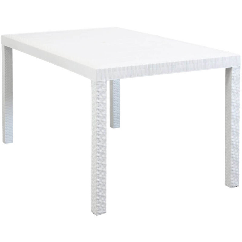 Tavolo Da Giardino Rettangolare Fisso In Wicker Stampato Bianco Cm 150 X 90 Da Esterno Giardino Terrazzo Portico Locale Bar - MILANI HOME