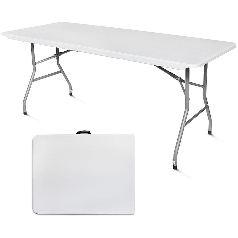 Tavolo Portatile Pieghevole, Tavolo Trasportabile, 180 x 74 cm, Bianco, Pieghevole a metà, Materiale: HDPE - LEOGREEN