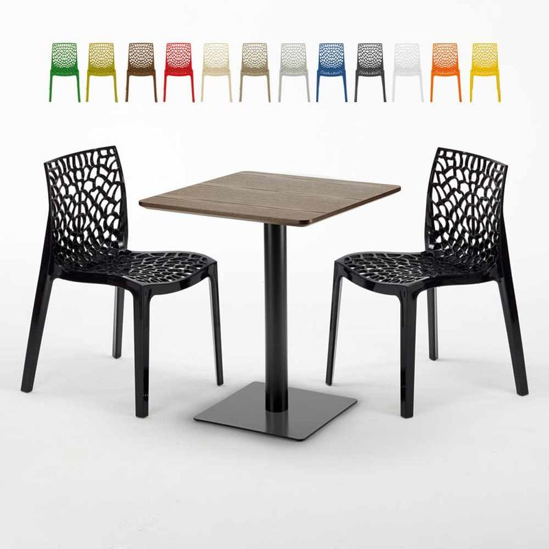 Tavolo Quadrato 60x60 cm Base Nera e Top in Legno con 2 Sedie Colorate Gruvyer Kiss | Nero - GRAND SOLEIL