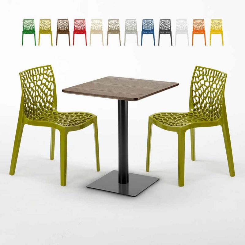 Tavolo Quadrato 60x60 cm Base Nera e Top in Legno con 2 Sedie Colorate Gruvyer Kiss | Verde Anice - GRAND SOLEIL - L'avis des Clients