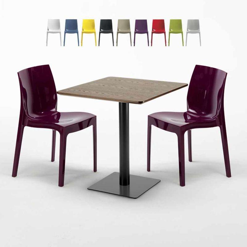 Tavolo Quadrato 60x60 cm Piano Effetto Legno con 2 Sedie Colorate Ice Kiss | Viola - GRAND SOLEIL