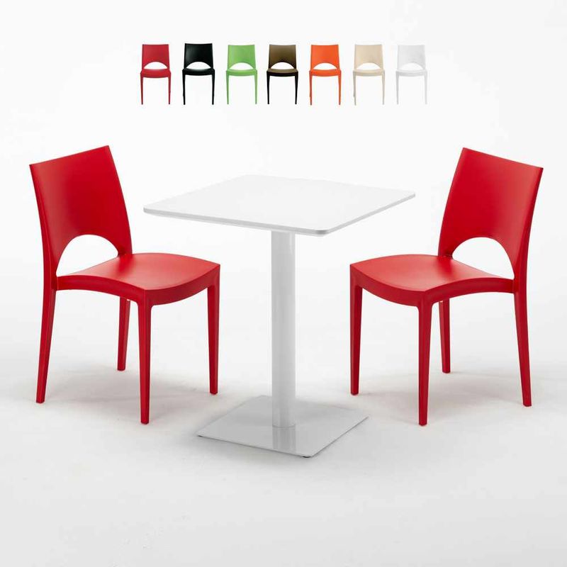 Tavolo Quadrato Bianco 60x60 cm e 2 Sedie Colorate Paris Lemon | Rosso - GRAND SOLEIL