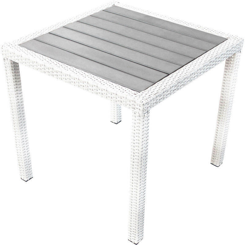 Tavolo Quadrato Fisso In Wicker Bianco 80 X 80 Piano In Polywood Intreccio In Rattan Sintetico Da Esterno Giardino - MILANI HOME