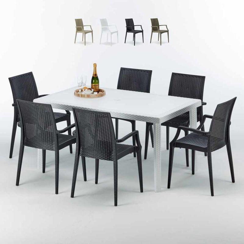 Tavolo Rettangolare Bianco 150x90 cm con 6 Sedie Colorate Bistrot Arm Summerlife | Nero - GRAND SOLEIL