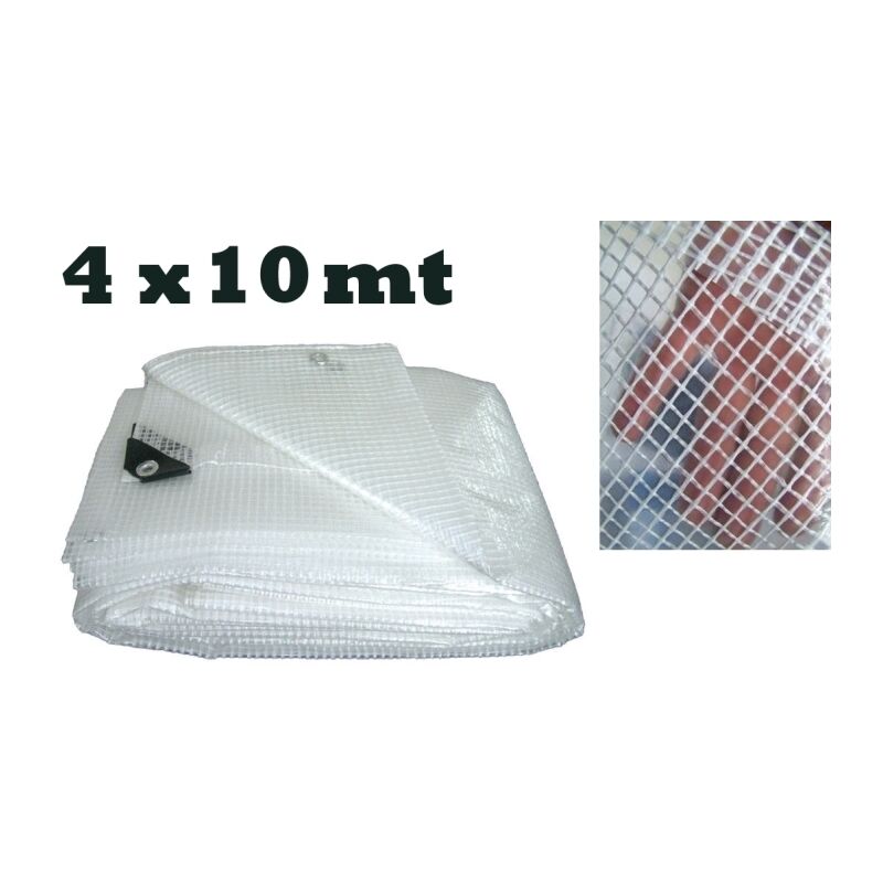 Telo rinforzato retinato trasparente occhiellato con angoli rinforzati 4x10m
