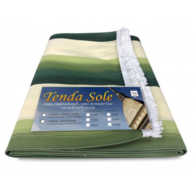 TENDA SOLE ' MESSICO VERDE ' CONFEZIONATA GIÀ PRONTA PER L'USO REALIZZATA IN TESSUTO INDISTRUTTIBILE DI ACRILICO. RIFINITA NELLA PARTE SUPERIORE CON PUNTINA E OCCHIELLI IN ACCIAIO MENTRE NEI LATI ORLO SEMPLICE E NELLA PARTE INFERIORE FRANGIA ABBINATA. È DOTATA DI GANCI IN PLASTICA CHE AGGANCIATI AGLI OCCHIELLI IN ACCIAIO DELLA TENDA GLI PERMETTONO DI ESSERE MONTATA SU QUALSIASI TIPO DI BASTONE. LA TENDA NON È STAMPATA, COME NEL CASO DELLE TENDE DA SOLE ECONOMICHE, MA IL COLORE È REALIZZATO A TELAIO IN TINTO FILO. È IN TESSUTO ACRILICO CHE RESISTE AD ALTE TEMPERATURE ED HA UNA DURATA DI PARECCHI ANNI. -tessuto..................................................ACRILICO -funzione tessuto...................................COPRENTE -composizione tessuto...................100% ACRILICO -finitura superiore.................OCCHIELLI IN ACCAIO -finitura inferiore.......................................FRANGIA -colore..........................................................VERDE...Per saperne di più