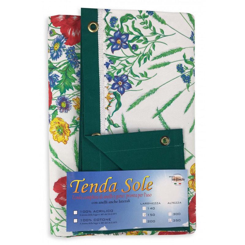 TENDA SOLE DA ESTERNO GIARDINO STAMPATA FONDO BIANCO CONFEZIONATA Cm. 150x350 - TEX FAMILY