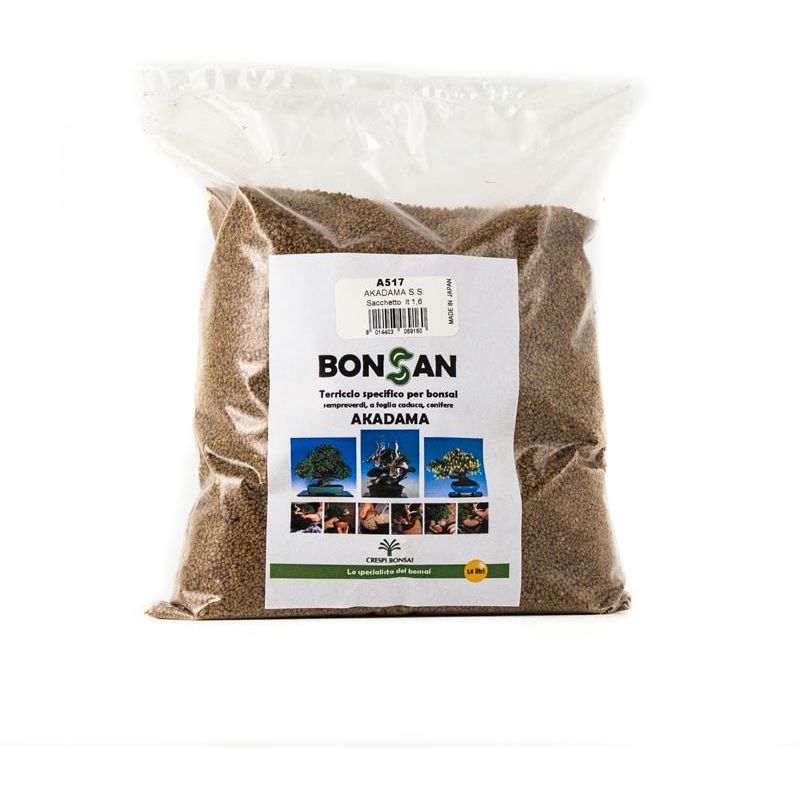 Per Shohin e finiture. È un terriccio giapponese neutro oppure leggermente acido, con un Ph da 6,5 a 6,9: una caratteristica ideale dal punto di vista orticolo per la maggior parte delle specie. Come tutti i substrati composti da particelle minerali, l’akadama è nettamente più porosa rispetto ai composti organici e mantiene per lungo tempo inalterata la sua struttura fisica. Assicura un drenaggio perfetto, che rende praticamente impossibile la perdita di un albero per asfissia e marciume radicale. Grazie alle qualità di questo particolare terriccio, i bonsai in Giappone vengono generalmente coltivati in akadama pura, combinata nelle diverse granulometrie, con l’impiego regolare di concime organico in pastiglie a lenta cessione e con l’attento controllo delle annaffiature che devono essere più frequenti. Granulometria Ø 3-5 mm Sacchetto da: 1,6 litri Origine: Giappone Origine Giappone...Per saperne di più
