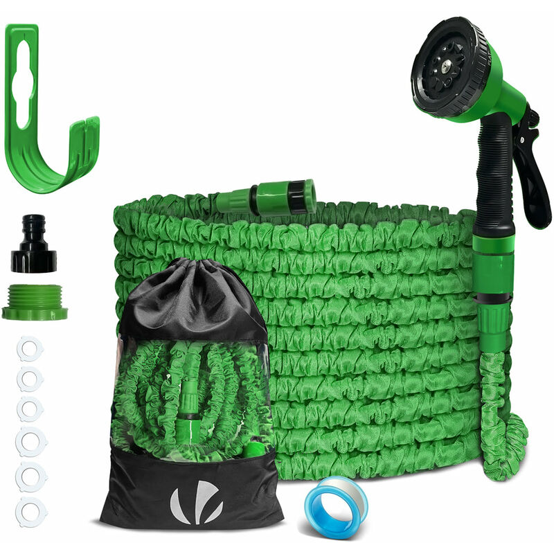 Tubo Irrigazione Estensibile 15m, Tubo Flessibile da Giardino, Pistola a Spruzzo d'Acqua 10 Funzioni Tessuto di 800D con Accessori, Verde - Vounot