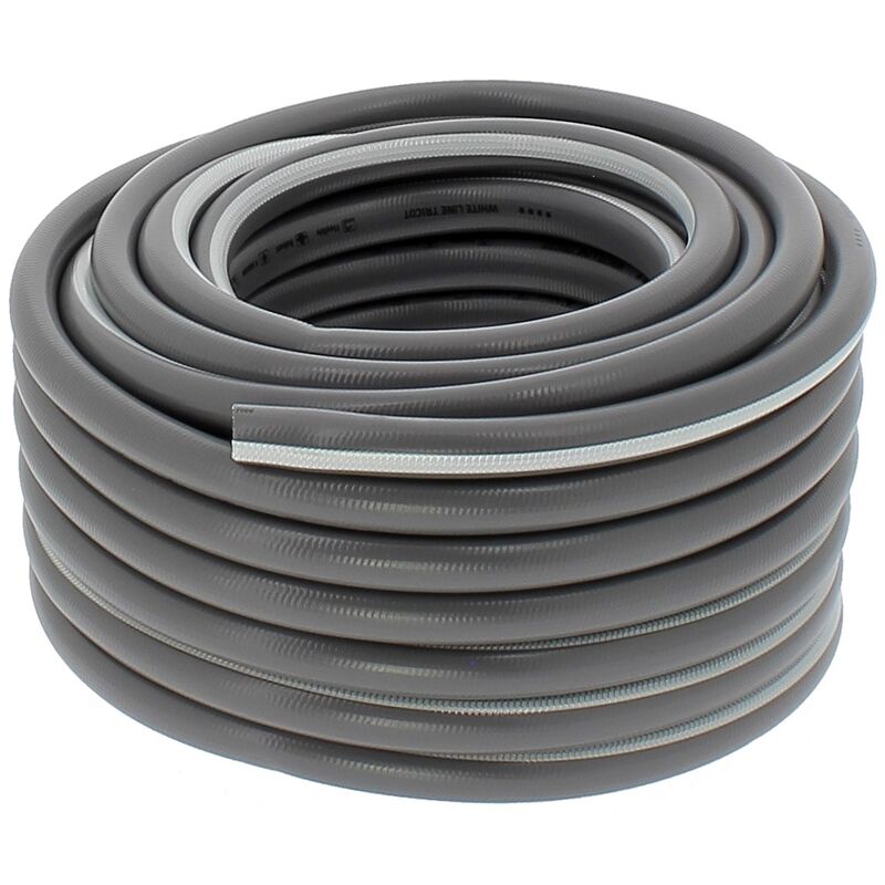 Questo tubo da giardino è destinato a un uso professionale o domestico intensivo. La composizione in 5 strati con rinforzo in tessuto a maglia lo rende molto resistente e flessibile. - Tubo adatto per uso professionale - Lunghezza: 20 metri - Tubo da giardino con rinforzo tessile in maglia di PVC - Struttura: 5 strati - Diametro denominazione commerciale: 15 mm (5/8 pollice) - Diametro effettivo: 15,9 mm - Antialga - Anti UV - Antitorsione - Buona resistenza allo schiacciamento - Flessibilità: elevata - Colore: grigio e bianco - Pressione massima: 24 bar - Temperatura di esercizio: da -15°C a +50°C...Per saperne di più