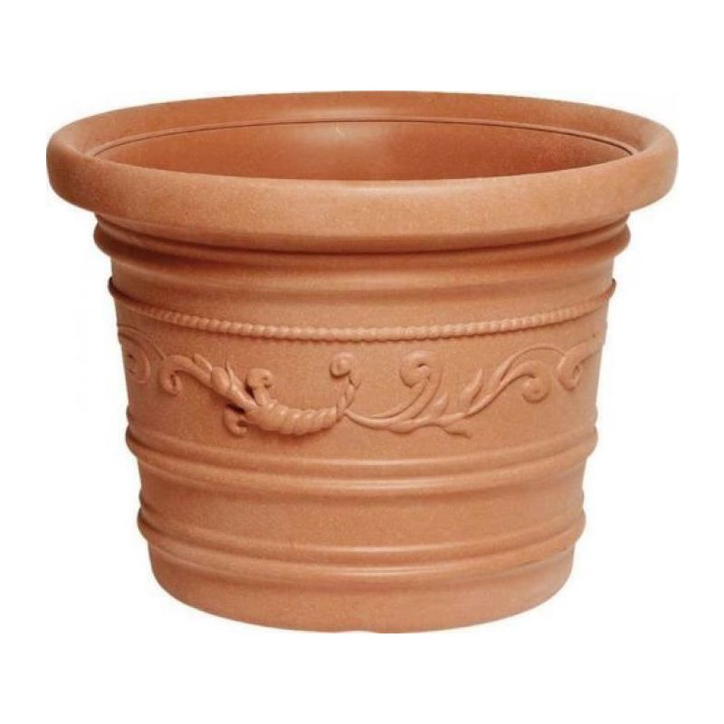 Vaso tondo festonato in resina colore terracotta doppio bordo diametro cm 80