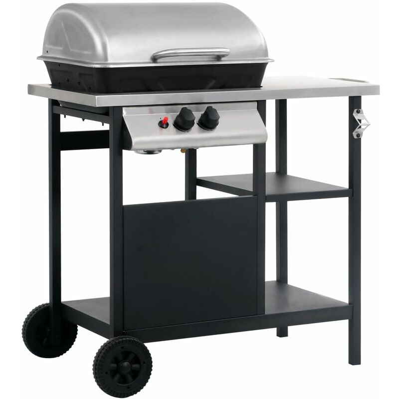 vidaXL Barbecue e Griglia a Gas con 3 Ripiani e Tavolino Nero e Argento - Nero