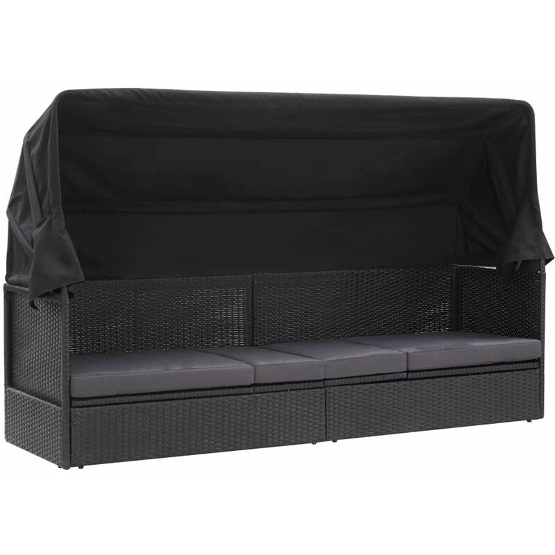 vidaXL Divano da Esterno con Baldacchino in Polyrattan Nero - Nero