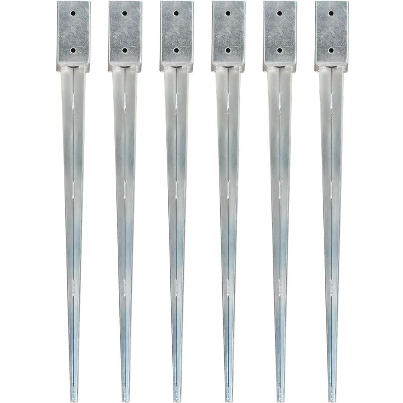 vidaXL Picchetti di Terra in Acciaio Zincato 6 pz Argento 7x7x90 cm