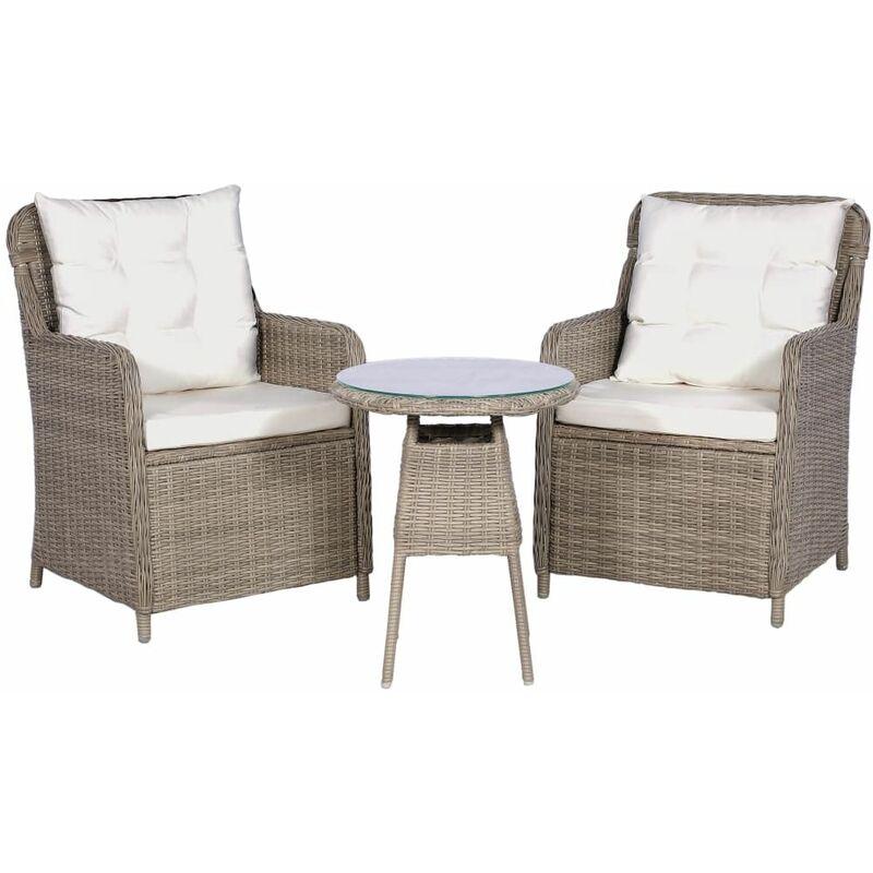 vidaXL Set da Bistro 3 pz con Cuscini in Polyrattan Marrone - Marrone