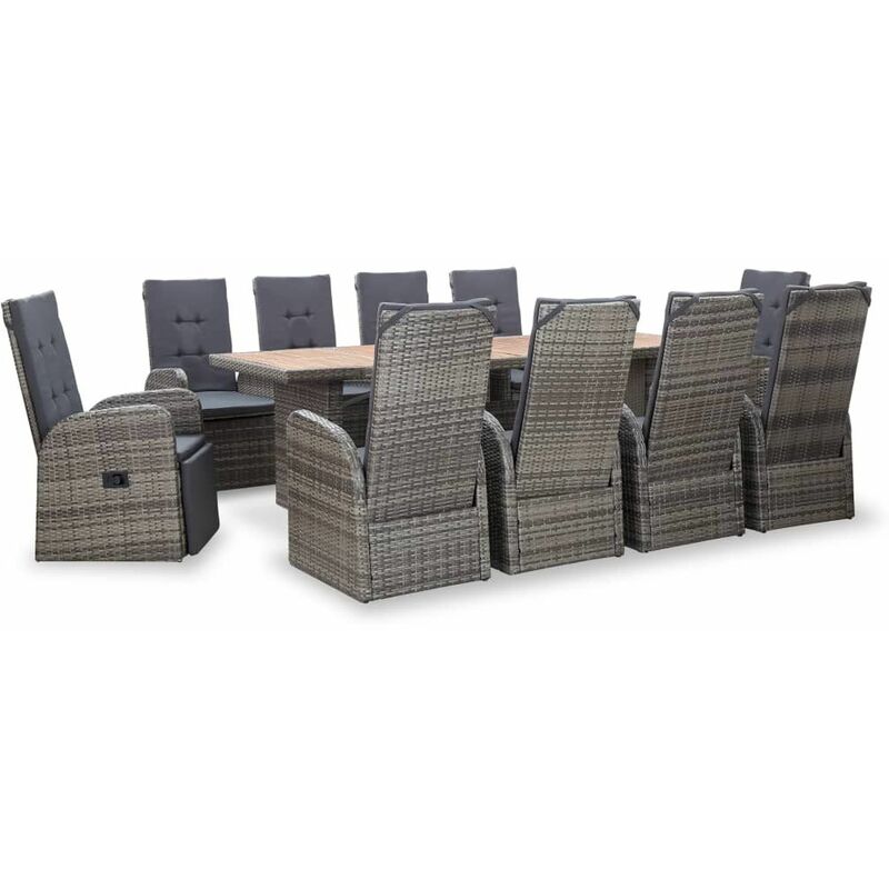 vidaXL Set da Pranzo da Giardino 11 pz in Polyrattan e Acacia Grigio - Grigio - L'avis des Clients