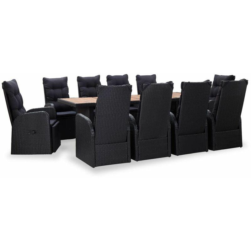 vidaXL Set da Pranzo da Giardino 11 pz in Polyrattan e Acacia Nero - Nero