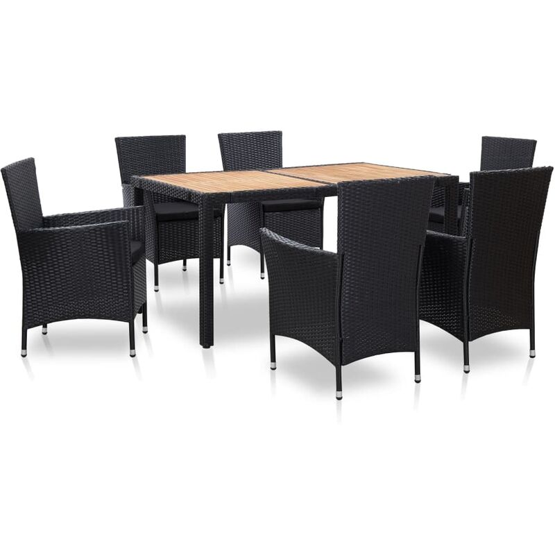 vidaXL Set da Pranzo da Giardino 7 pz con Cuscini in Polyrattan Nero - Nero