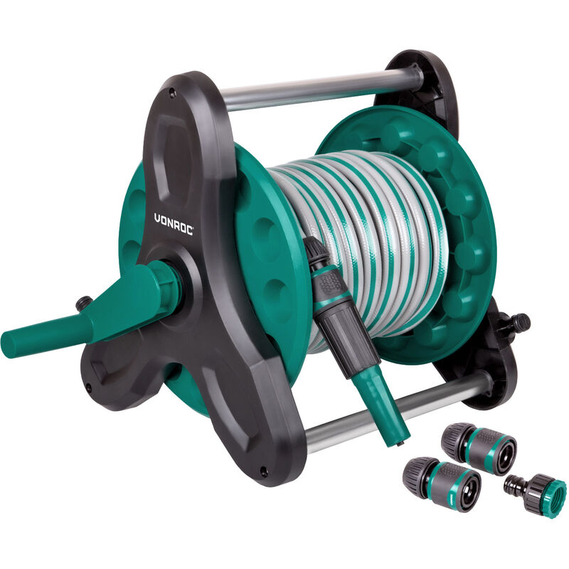 VONROC Carrello avvolgitubo con tubo da 15 metri. Include ugello e raccordi