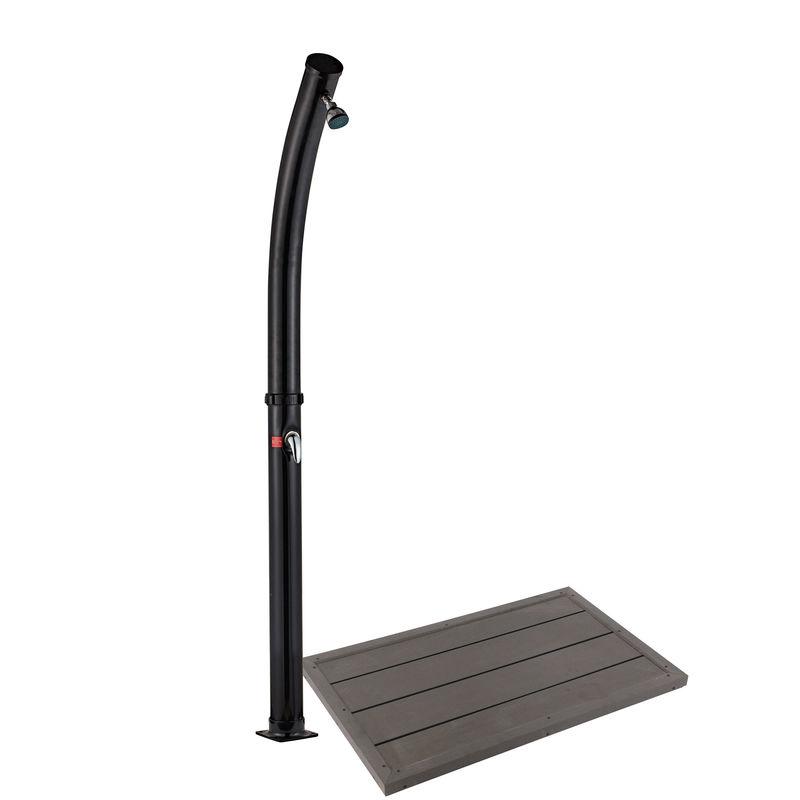 Concedersi l'esperienza della Spa anche nel proprio giardino o nella propria piscina, perché no? Questo set composto da piatto e doccia a energia solare con un ampio soffione a pioggia vi farà provare una gradevole sensazione di benessere. Il soffione eroga un piacevole getto d'acqua ed è a prova di calcare. Con un'altezza di 217 cm, questa doccia da esterno garantisce comodità a tutti. Lo spazioso serbatoio in plastica può contenere fino a 20 litri d'acqua e, grazie al suo funzionamento a energia solare, è in grado di offrire un passaggio dal freddo al caldo senza consumo di elettricità. La temperatura desiderata può essere regolata rapidamente tramite il miscelatore monocomando. In caso di non utilizzo, la doccia può essere facilmente conservata; basta svitare la parte superiore e risparmierete molto spazio. La doccia è collegabile tramite un normale tubo da giardino. La pressione massima di esercizio è di 3 bar. Il piedistallo nero misura 155 x 155 mm. Per mezzo del materiale...Per saperne di più