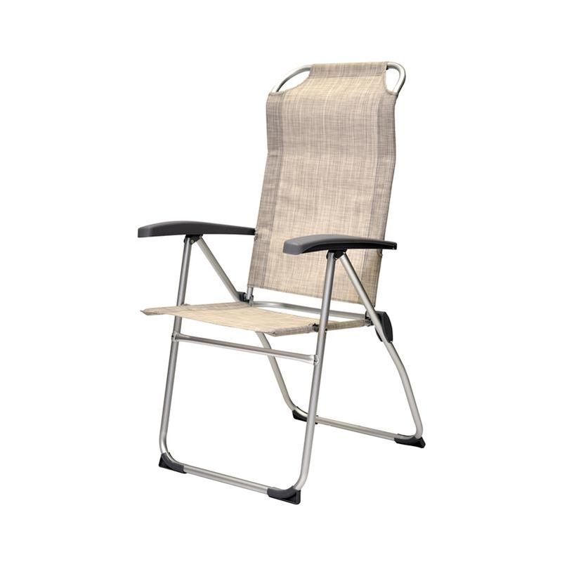 Poltrona da esterno in textilene 2x1 (peso 3,5 kg) con struttura in alluminio satinato, ideale per chi desidera prendere il sole spiaggia o in giardino. Richiudibile in poco spazio (dimensioni da chiusa: 58Lx10Px98H), può essere conservata in garage o in cantina e trasportata con facilità perché leggerissima. Presenta un tubolare da 22 mm di spessore e, sotto la seduta, una barra di sostegno in acciaio verniciato per garantire una resistenza al carico fino a 110 kg. Lo schienale, ampio e confortevole, è alto 74cm e regolabile in 5 posizioni per mezzo del tradizionale sistema a scorrimento dei braccioli (misure braccioli 43x6cm), fino al raggiungimento dell'inclinazione desiderata. La peculiarità di questa poltrona sta nella forma anatomica dello schienale, chiamato a seguire le modulazioni del corpo. Il poggiapiedi ha gli angoli rivettati per un effetto antiscivolo anche sulle superfici più lisce. DIMENSIONI: 58Lx64Px108H cm (Quantità N. 1)...Per saperne di più